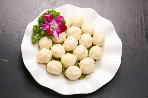5. 制作丸子:用手将鱼肉泥挤成一个个小丸子,放入蒸锅中。